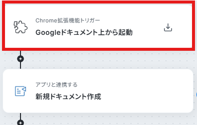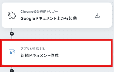 - 次に、トリガーでGoogleドキュメントを選択し、「Googleドキュメント上から起動」というアクションを設定します。