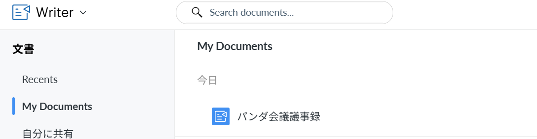 Zoho Writerを確認すると、新規ドキュメントが追加されています。