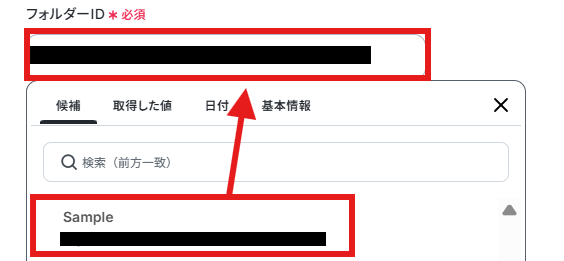 「フォルダーID」は候補に表示されるので、そちらから選択しましょう。
