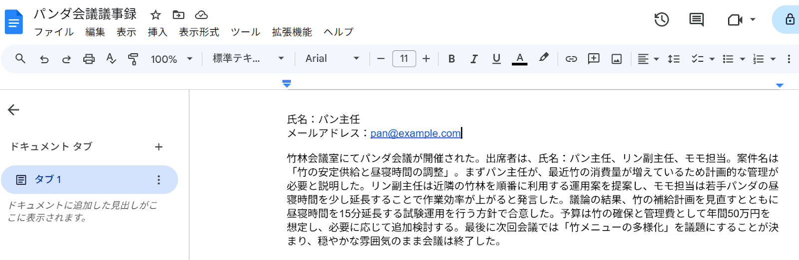 今回は以下のようなテスト用ドキュメントを作成しました。