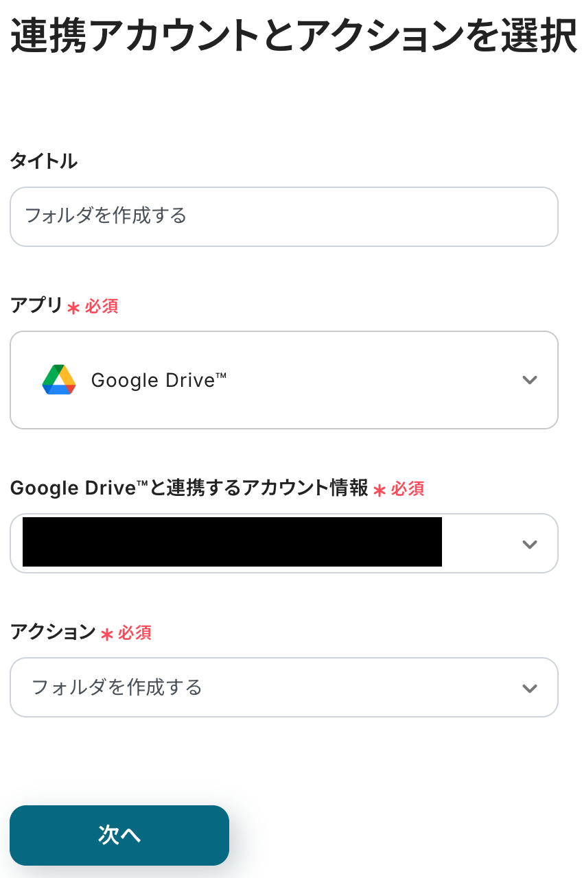 このワークフローは、Google Driveで特定のフォルダが作成されたことをきっかけに、あらかじめ設定したサブフォルダを自動で作成します。