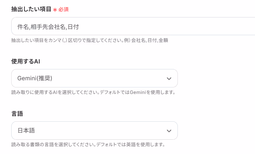 ※YoomのOCR機能では、アクション記載の規定の文字数を超えるデータや、文字が小さすぎる場合に正しく読み取れないことがあります。