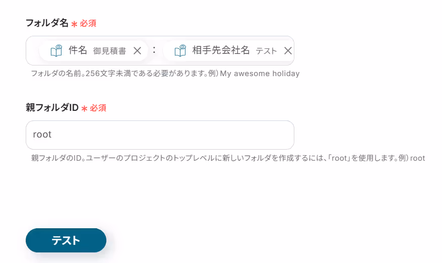 固定の文言なども追加してお好みのフォルダ名に設定してみてください。
