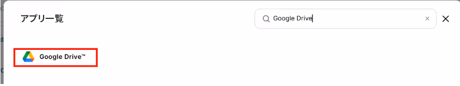 マイアプリから「新規接続」を押した後、Google Driveを検索し、クリックしてください。