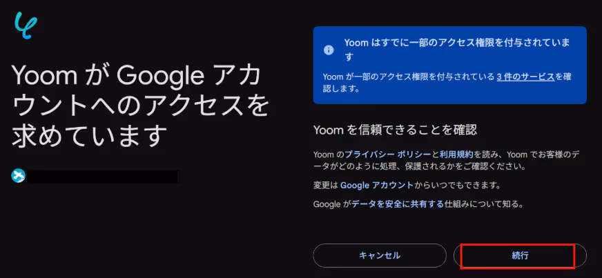 以下のポップアップが表示されたらOKをクリックし設定をはじめましょう!