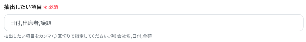 「抽出したい項目」もデフォルトで設定されていますが、アップロードした書類に合わせて編集・追加してください。