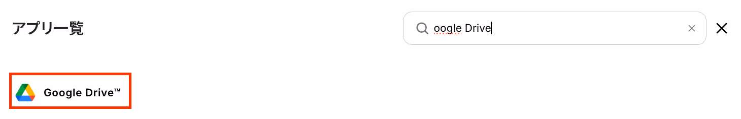 検索窓にGoogle Driveと入力し、表示された候補からアプリを選択します。