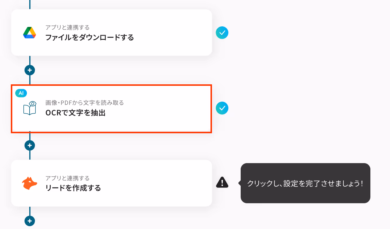 以上が、「Google Driveで特定のフォルダ内に新しくファイルが作成されたら、OCRしてHunterにリードを作成する」フローの作成手順でした!