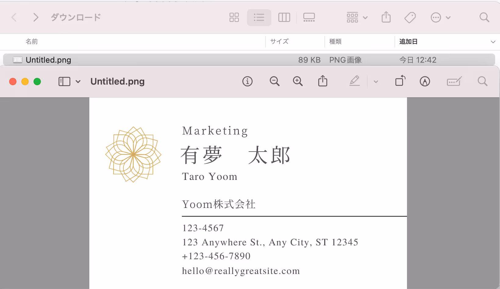 テストなので「Sample名刺」や「テストファイル」など、架空の内容のものでOKです!