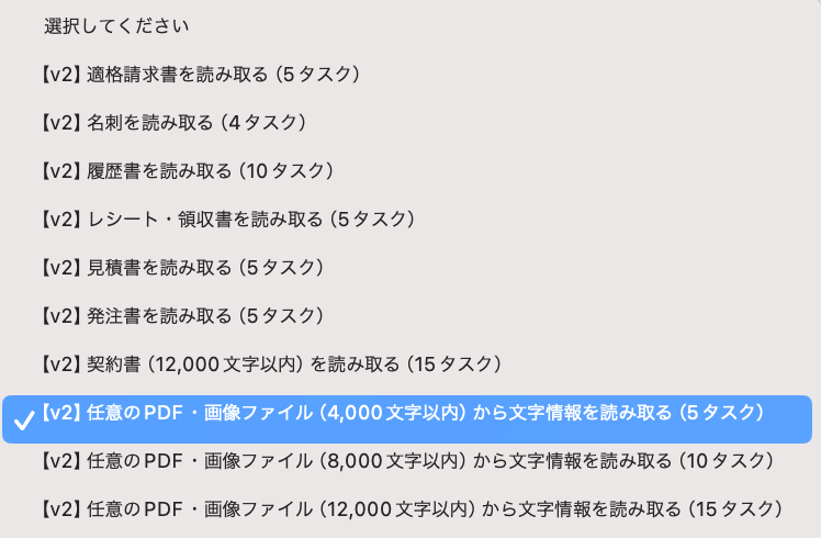 ・OCRまたは音声を文字起こしするAIオペレーションはチームプラン・サクセスプランでのみご利用いただける機能となっております。フリープラン・ミニプランの場合は設定しているフローボットのオペレーションはエラーとなりますので、ご注意ください。