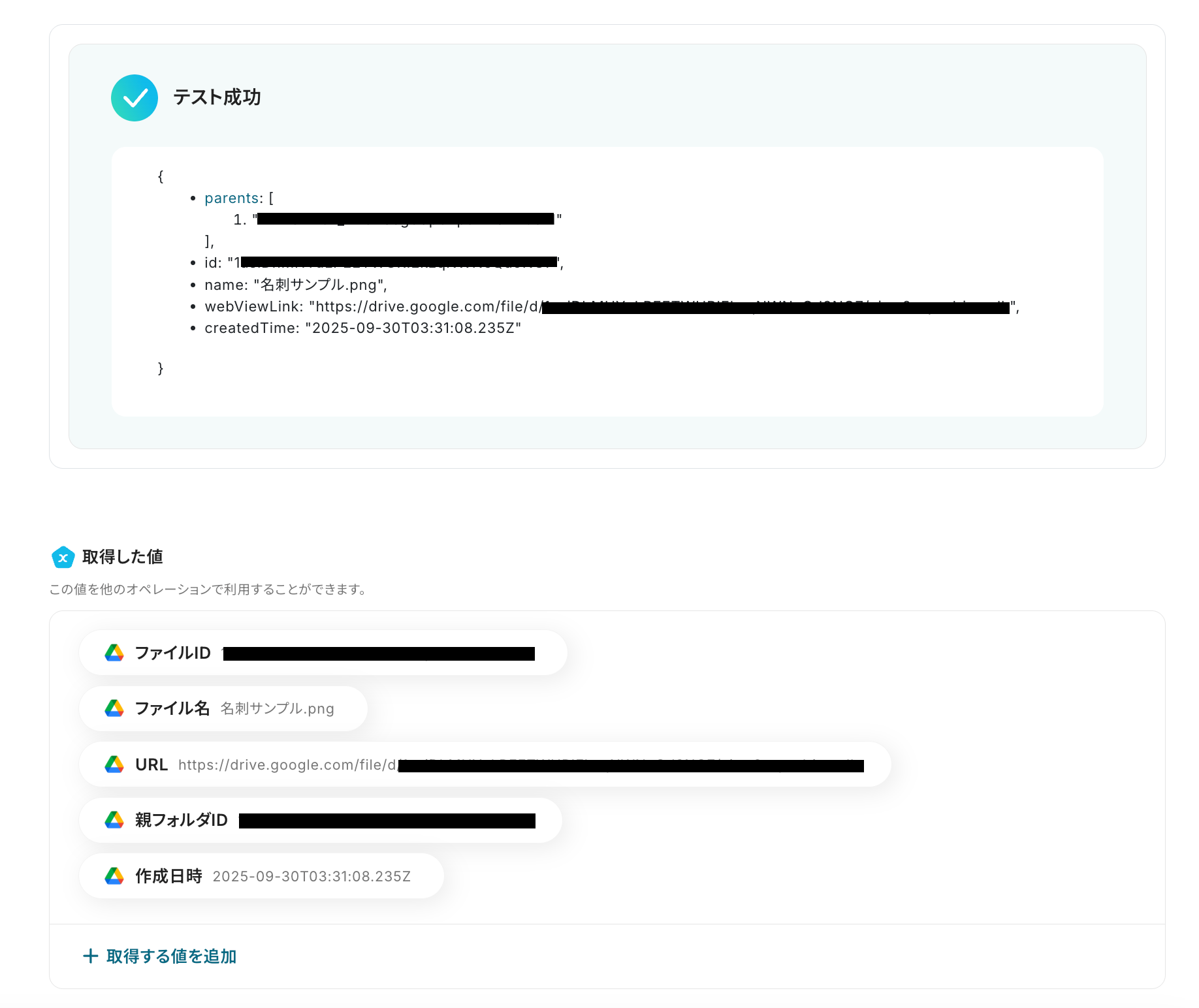 ・Googleフォームをトリガーとして使用した際の回答内容を取得する方法は下記をご参照ください。