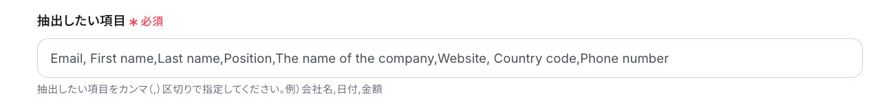 抽出項目はカンマ(,)区切りで複数指定でき、柔軟にカスタマイズすることが可能です。