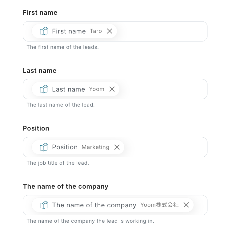 - アクセストークン:Yoomと連携するHunterアカウントから値を取得して入力します。