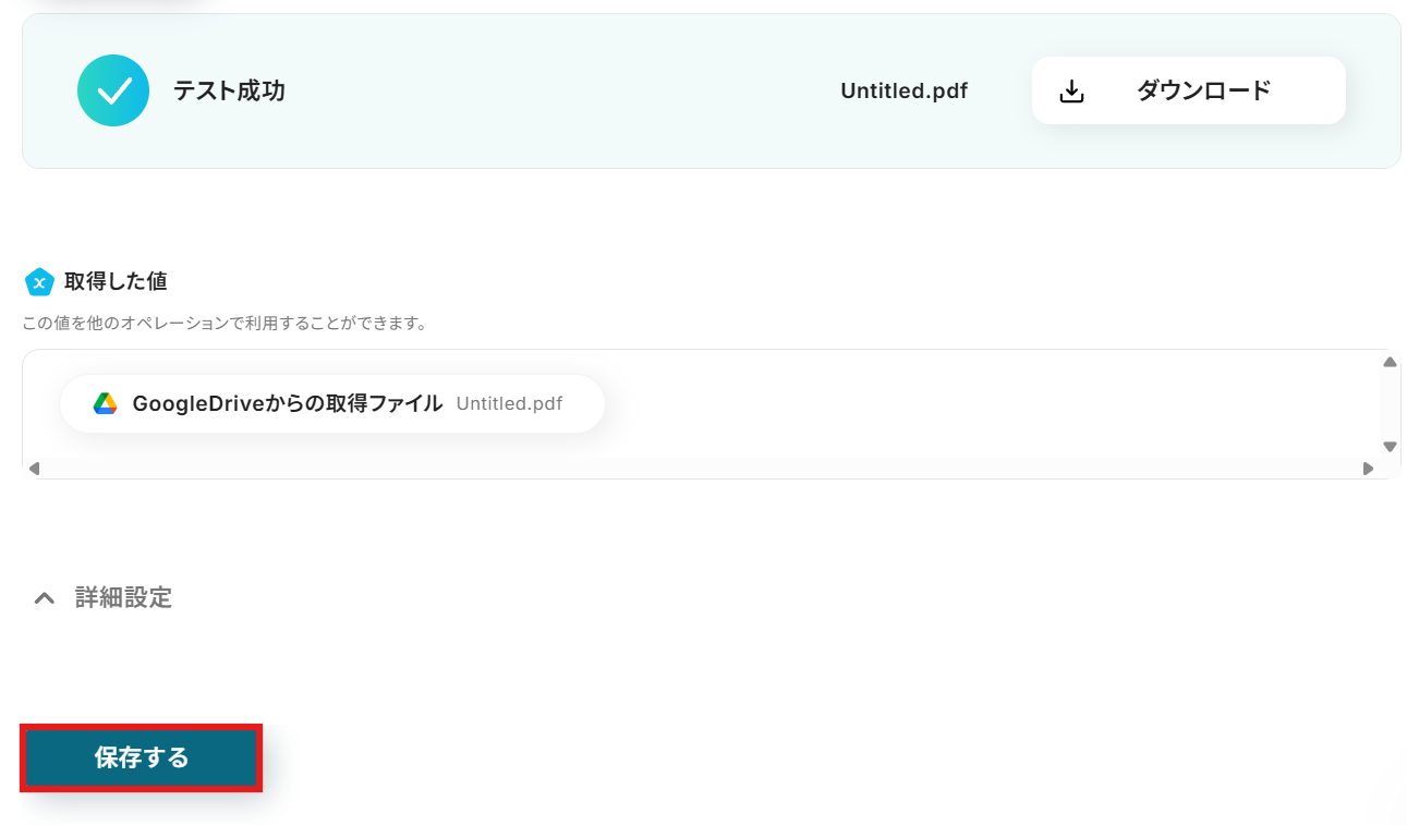 ステップ4:Google Driveからファイルをダウンロードするアクション設定
