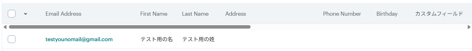 すべて入力できたらテストを実行してみましょう。 テストが成功すると、オーディエンスに以下のように追加されますのでMailchimpで確認してみましょう。