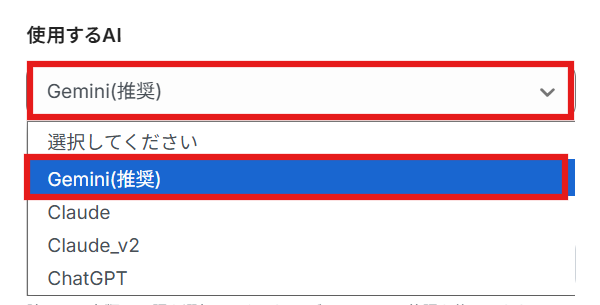 使用するAIを選択します。 今回は、推奨されているGeminiを選択しました。