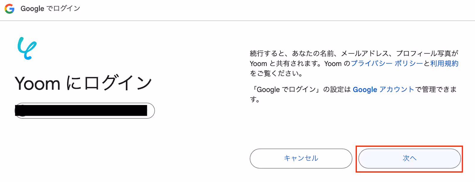 以下の画面が表示されたら、ログインするアカウントをクリックしてください。