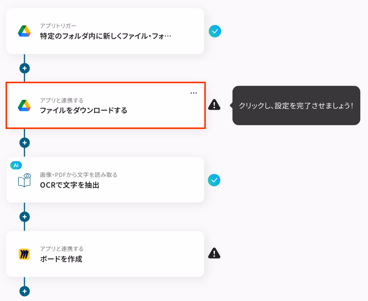 ここからは、「Google Driveにファイルがアップロードされたら、内容をOCRしMiroにボードを作成する」フローボットを設定していきます。