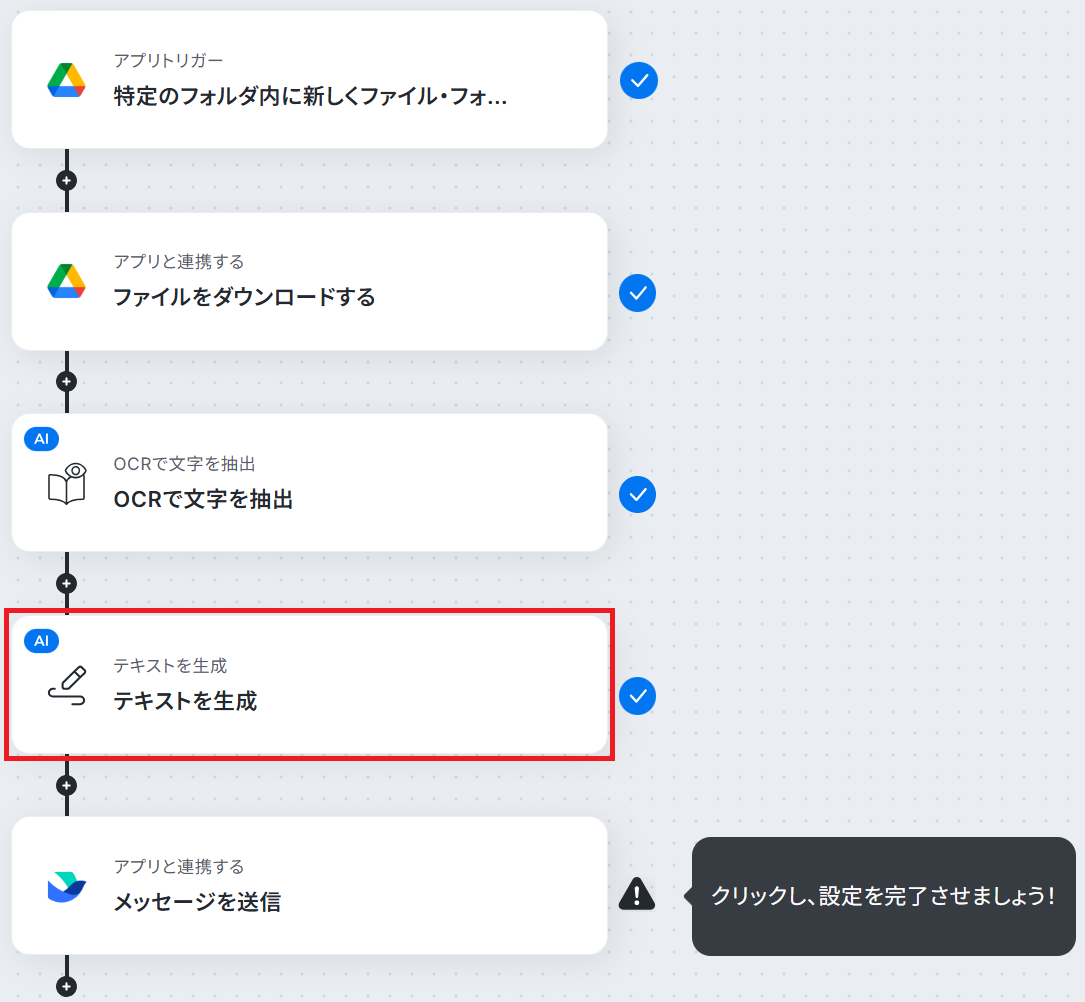 OCRと同様、テキスト生成アクションも以下のような種類がありますので用途に合わせて選択しましょう。