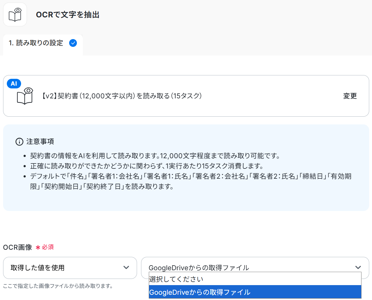※YoomのOCR機能では、アクション記載の規定の文字数を超えるデータや、文字が小さすぎる場合に正しく読み取れないことがあります。文字数や文字の大きさには少し余裕を持たせて利用しましょう。