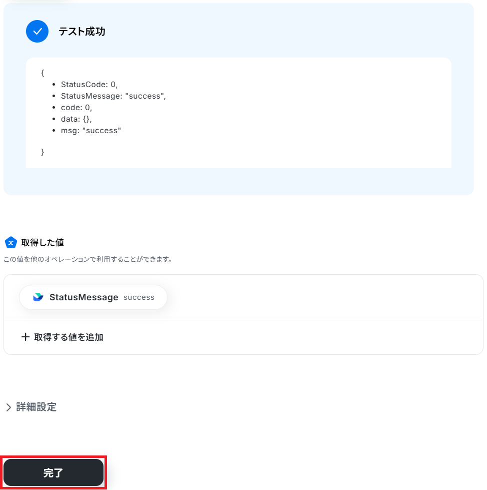 成功したら保存しましょう。ここで取得した値を次以降のステップで活用します。