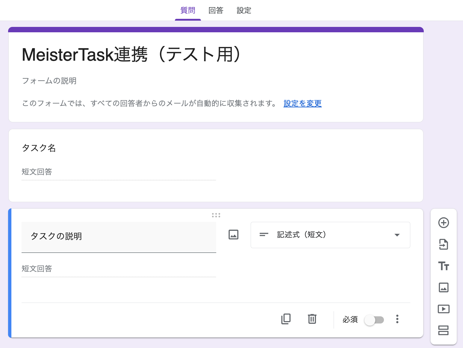ステップ1:GoogleフォームとMeistertaskをマイアプリ連携