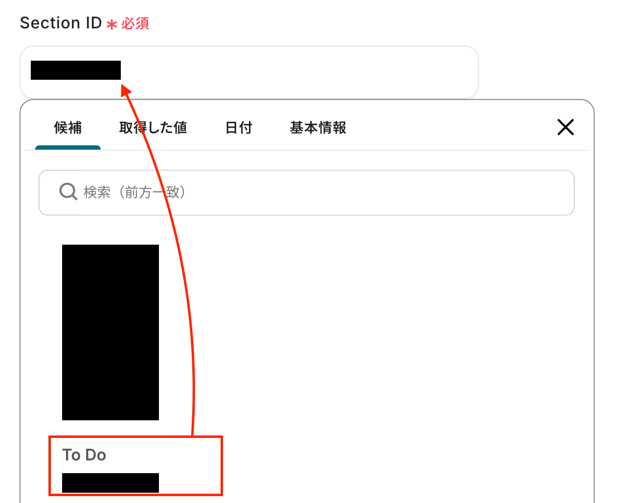 SectionID:入力欄をクリックして表示される「候補」から選択してください。