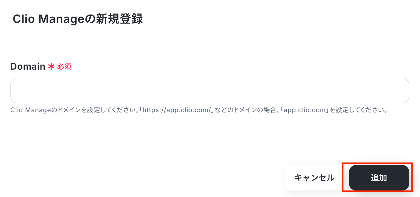 脚注を参考にDomainを入力後、「追加」をクリックしてください。