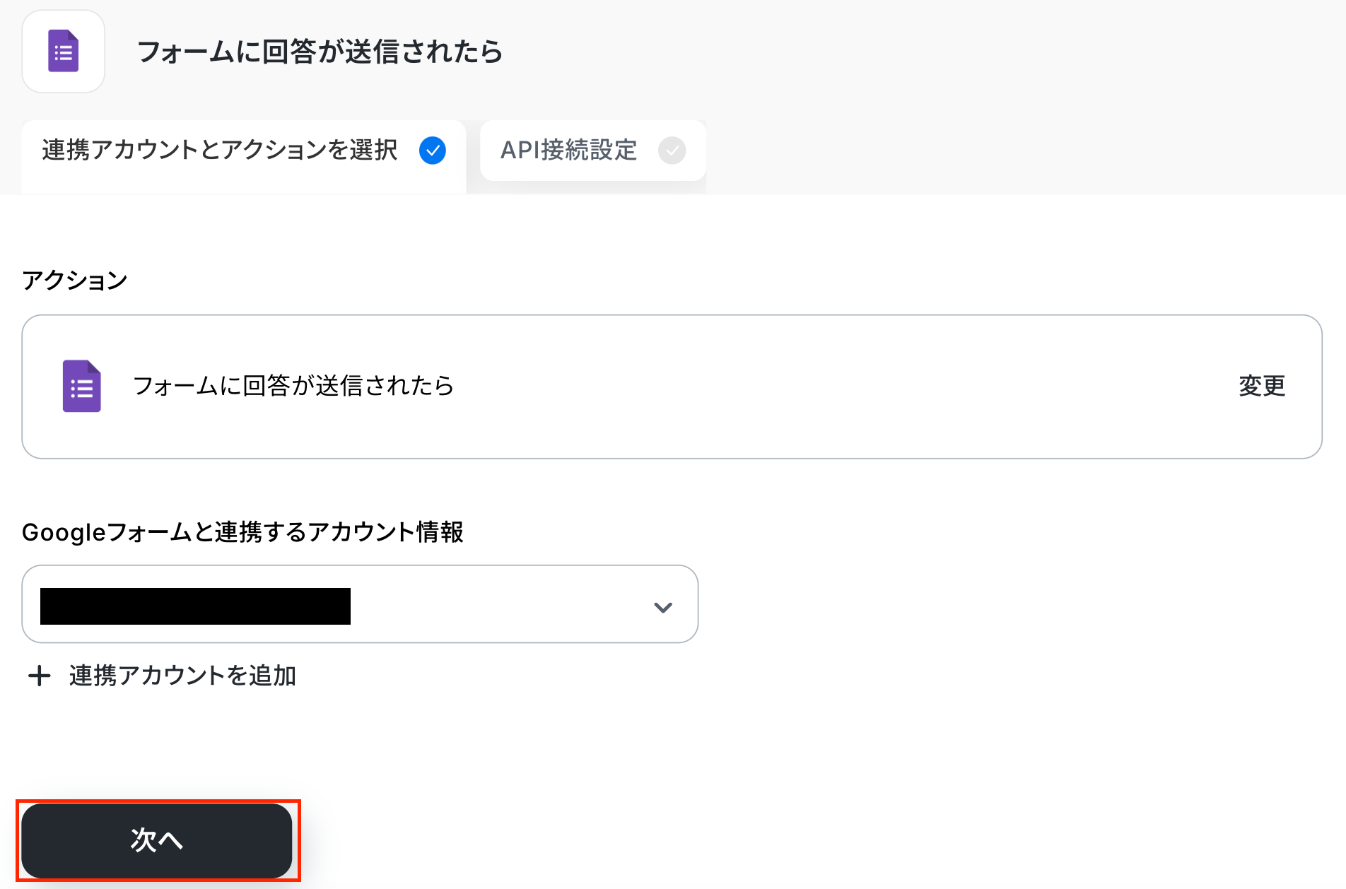 アクションはそのままで、「次へ」をクリックしましょう!
