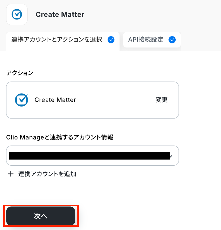 ステップ4:Clio Manageのアクション設定