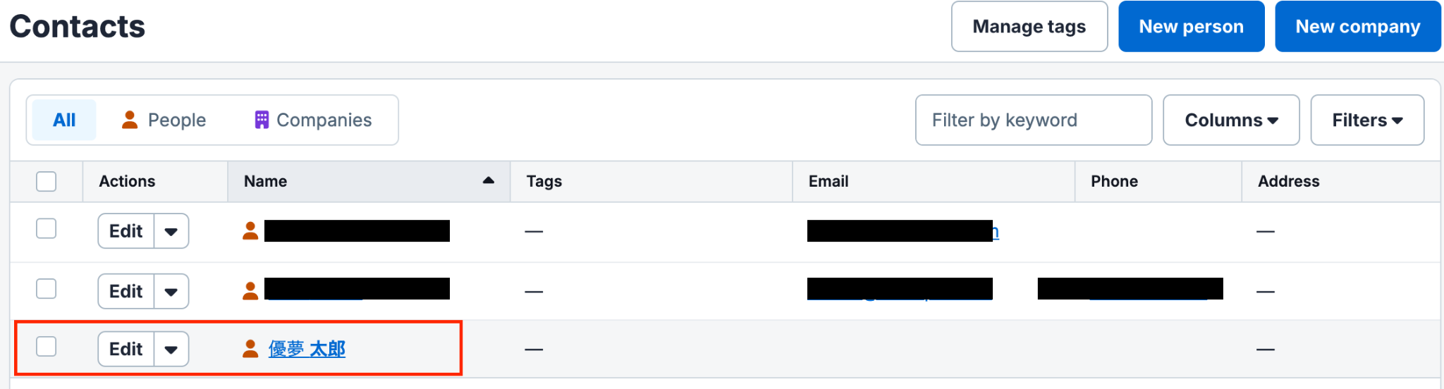 今回は以下の赤枠のPersonが検索対象です。