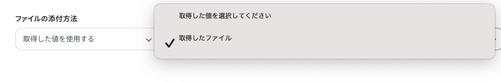 ファイルの添付方法:ここでは送信されたファイルを使用するので、下図のように「ダウンロードしたファイル」を設定してください。