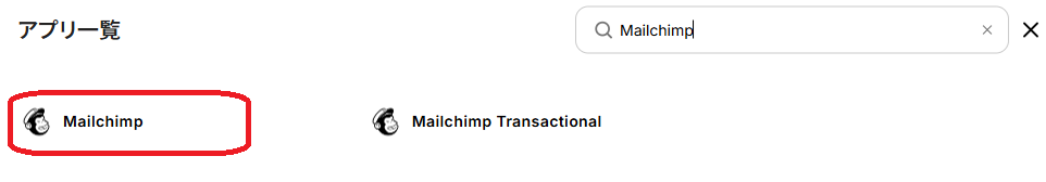 1.検索して、表示されたMailchimpのアイコンをクリック