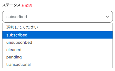 ステータス:どのような状態で、連携するのかというステータスを選択することができます