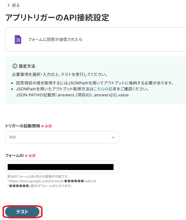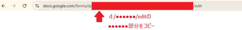 フォームID:作成したGoogleフォームのURLからID部分だけをコピーして貼り付けます
