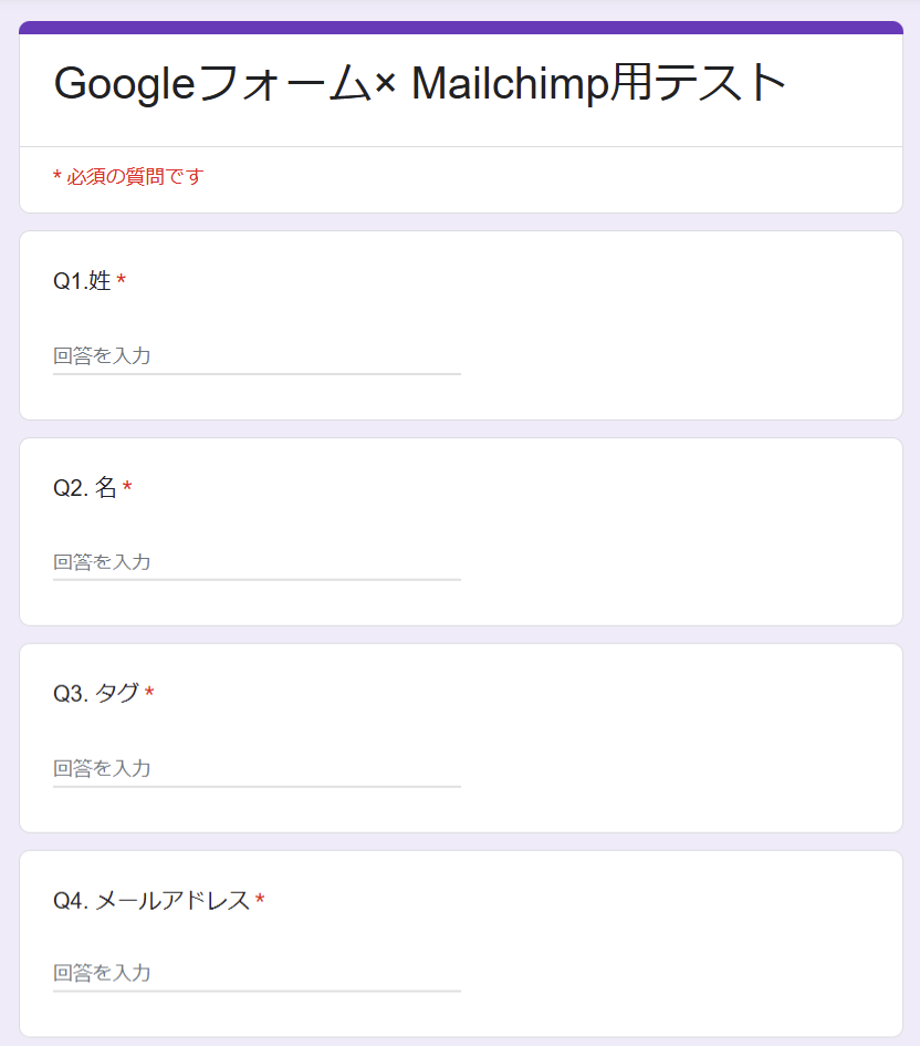 「Googleフォームで集めた顧客情報を、メルマガ配信のためにMailchimpに登録したい」