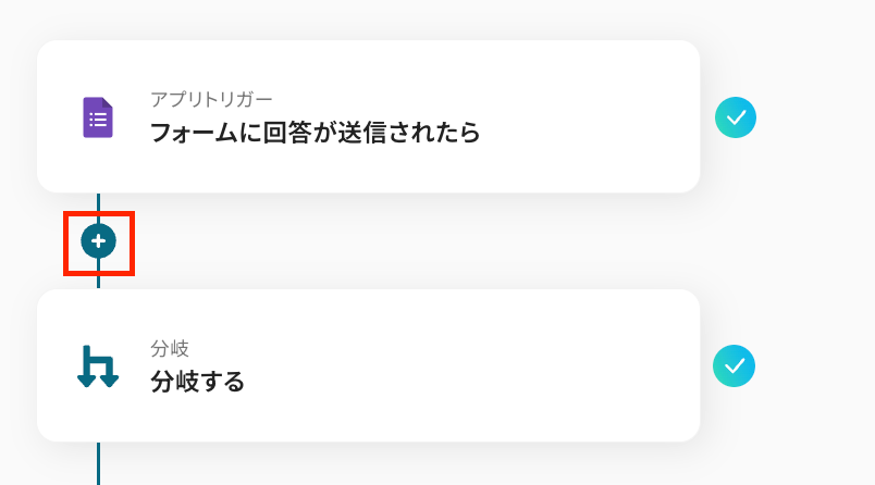 まず、トリガー直下の「+」マークを押して「分岐する」オペレーションを追加します。
