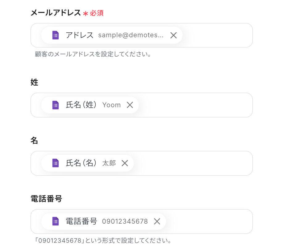 ・Googleフォームをトリガーとして使用した際の回答内容を取得する方法は下記を参照ください。https://intercom.help/yoom/ja/articles/6807133