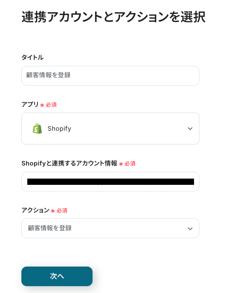 連携するアカウント情報は、基本的にステップ1で入力した情報が反映されていますが、フローで使用するものであることを確認しておきましょう。