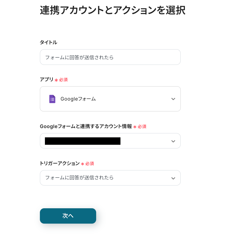 オペレーション:「フォームに回答が送信されたら」を設定してください。