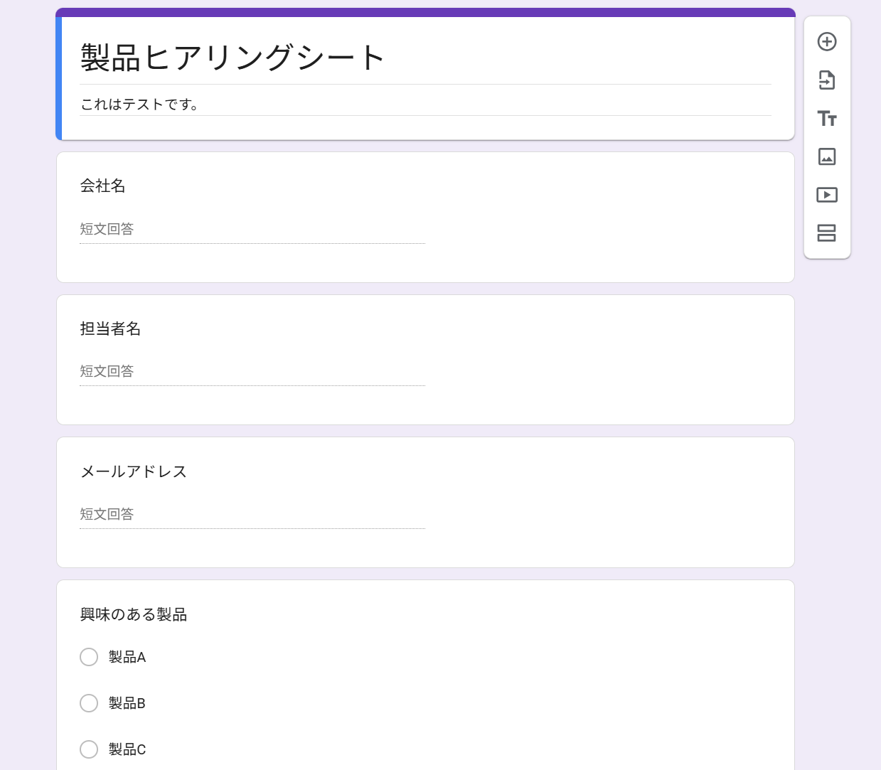 ・Googleフォームの質問内容の設定を適宜変更してご利用ください。
