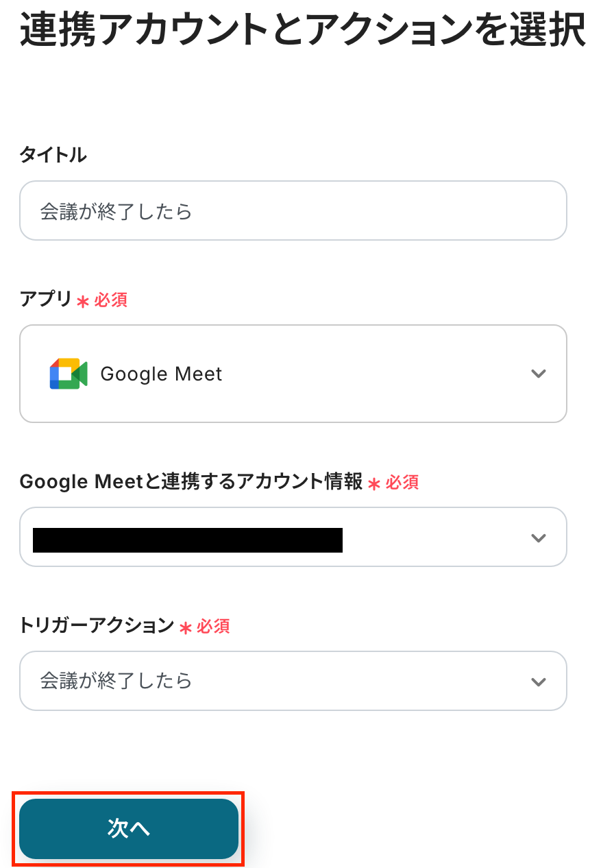次の画面で、タイトルを任意で修正し、連携するアカウント情報が合っているか確認をします。