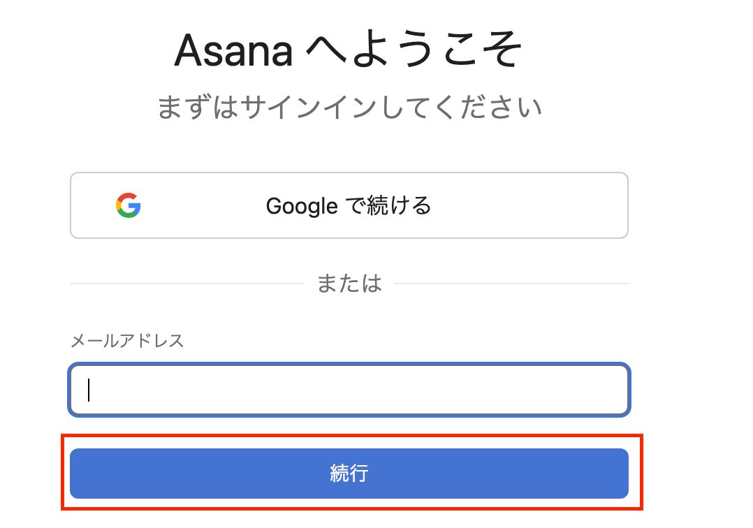 Asanaに登録しているメールアドレスを入力し、「続行」をクリックします。