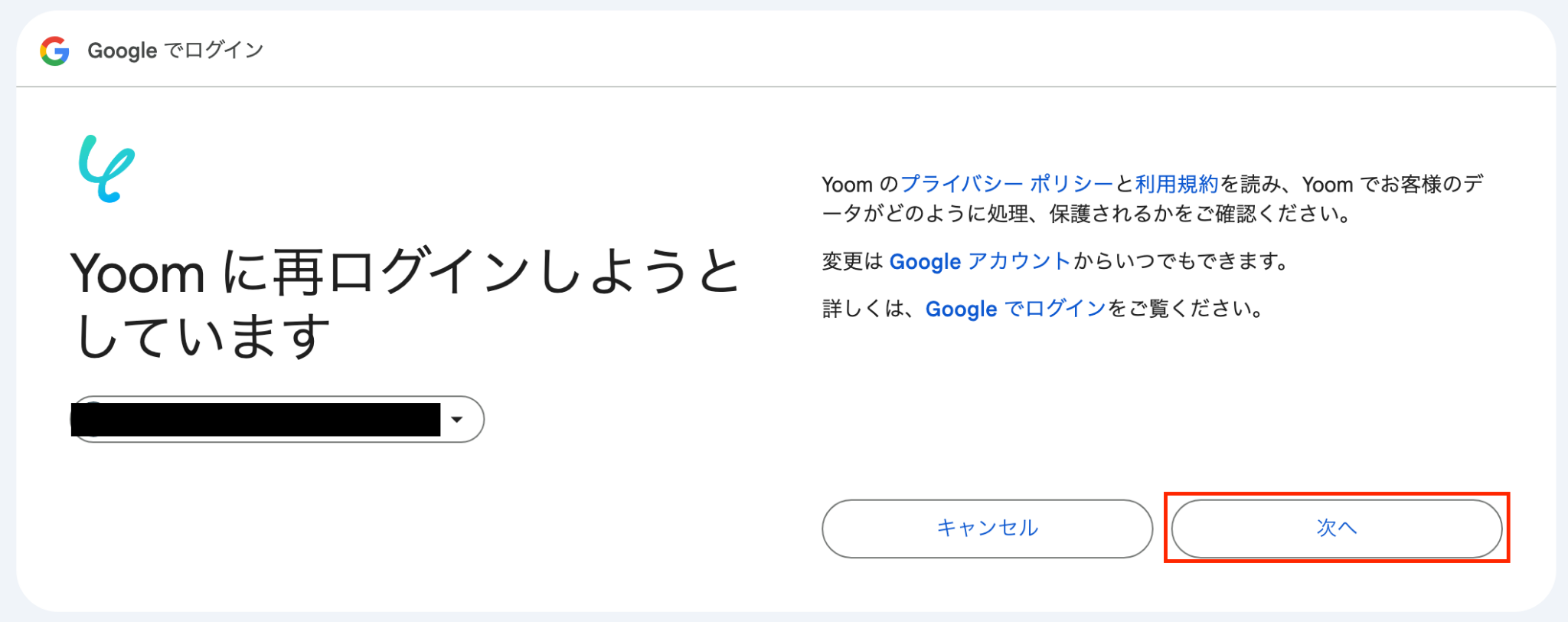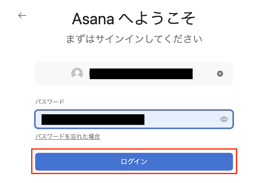次の画面でパスワードを入力し、「ログイン」をクリックします。