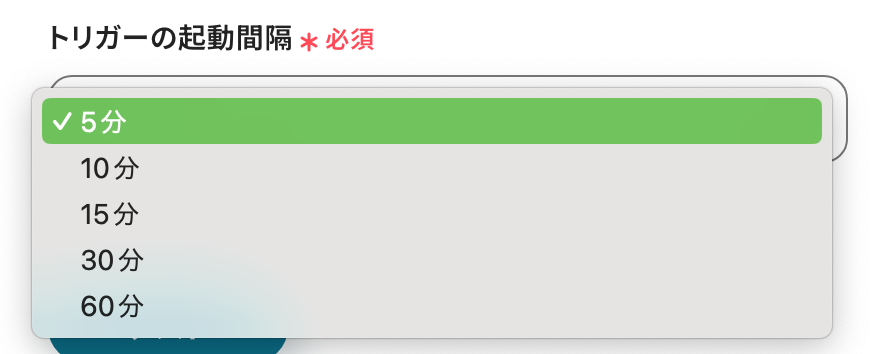 ・トリガーは5分、10分、15分、30分、60分の間隔で起動間隔を選択できます。