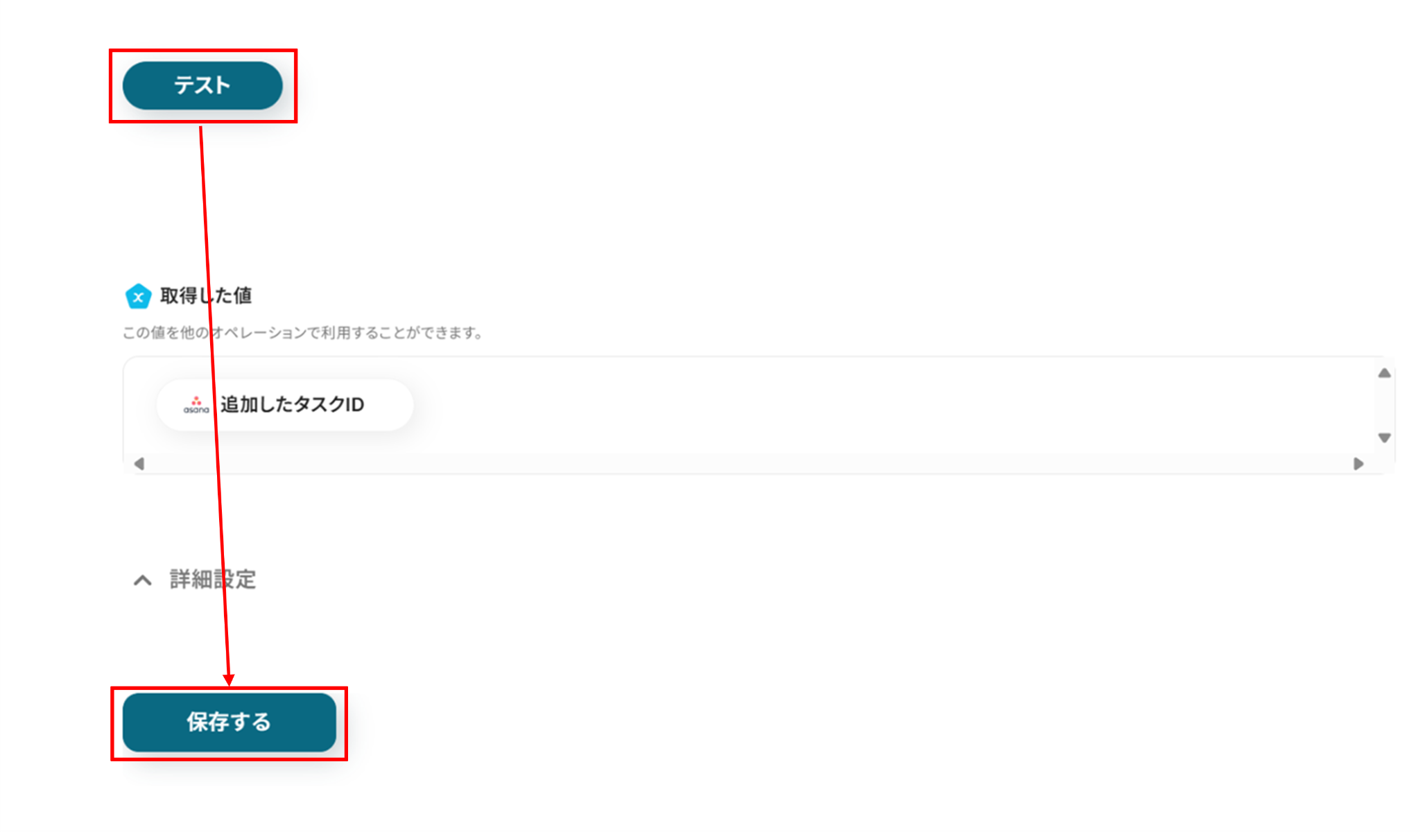 その後、Yoomに戻って「テスト」をクリックしましょう!