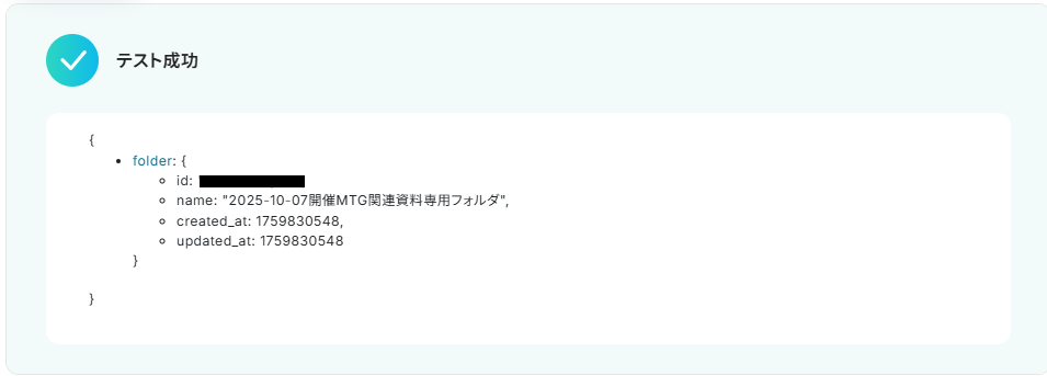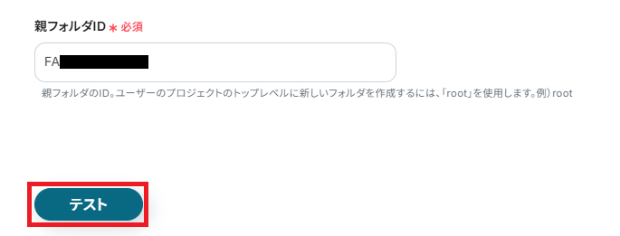 コピーしたフォルダIDを貼り付け、「テスト」を行いましょう。