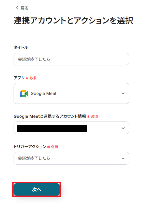 Google Meetのトリガー設定およびCanvaのアクション設定