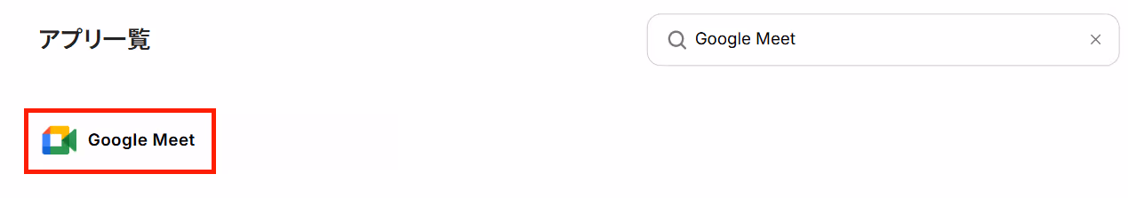 マイアプリから「新規接続」を押した後、Google Meetを検索しクリックしてください。