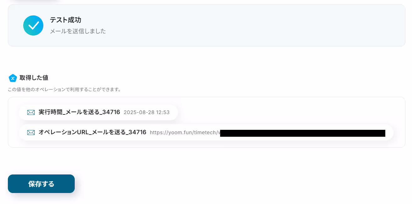 テストに成功し、以下のように表示されたら「保存する」をクリックします。